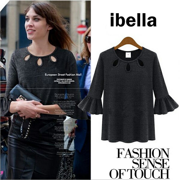 5折-針織衫 短版上衣 水滴領波浪袖上衣 t恤 預購 ibella 【71-5057】